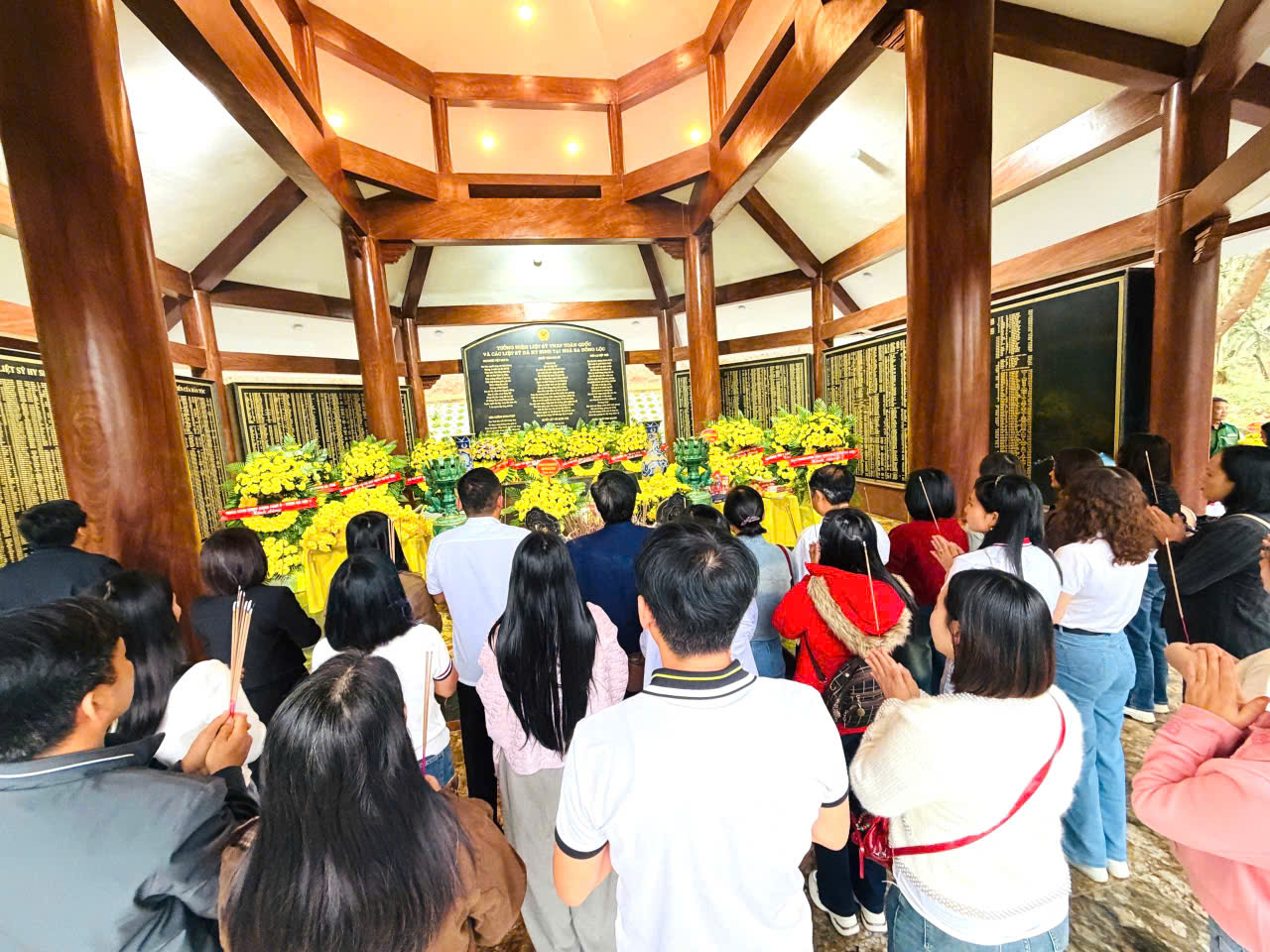 Tiếp nối hành trình, đoàn đến dâng hương tại Ngã Ba Đồng Lộc – nơi ghi dấu sự hy sinh anh dũng của 10 nữ thanh niên xung phong trên tuyến Đường Hồ Chí Minh huyền thoại. Trong không khí trang nghiêm, mỗi cán bộ, giáo viên đều bày tỏ lòng tri ân sâu sắc trước tinh thần bất khuất, kiên cường của thế hệ đi trước, đồng thời thêm tự hào về truyền thống cách mạng của quê hương.