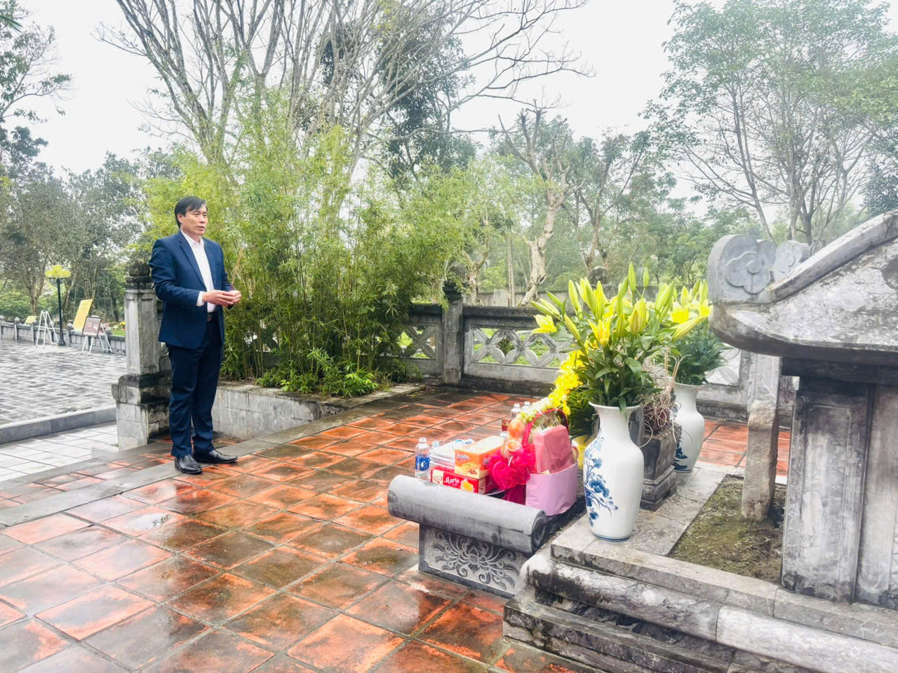 Thầy giáo Kiều Đình Truyền - Hiệu trưởng trường THCS Thạch trung dâng hương tại mộ Đại danh y Lê Hữu Trác